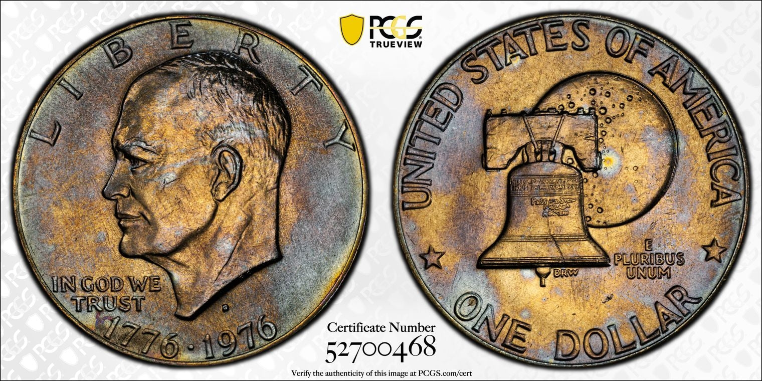 1976-D PCGS MS66 Type 2 Toned Eisenhower Dollar